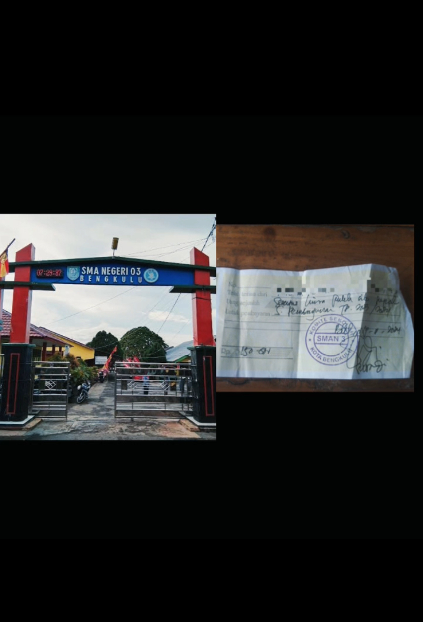 Di SMA 3 kota Bengkulu ada dugaan pungli berkedok pungutan uang komite dan uang bangunan di sekolah negeri yang sudah di bayar pemerintah, sangat membebani orang tua murid, dengan kedok komite sekolah.” Ujar salah satu seorang wali murid yang enggan disebutkan namanya Selasa 24,/12/2024