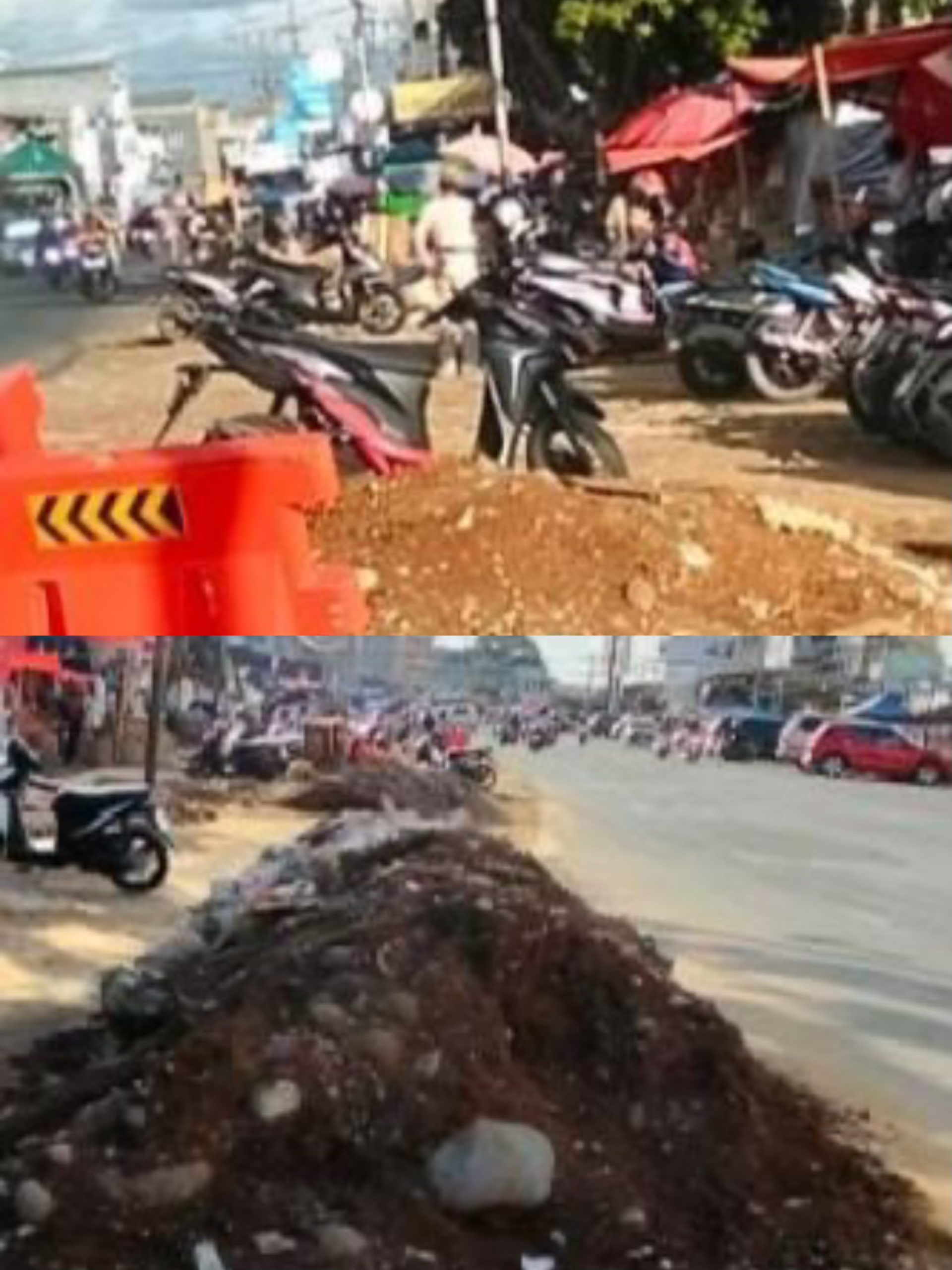 Tidak hanya itu, di sejumlah titik di sekitar lokasi proyek masih terlihat tumpukan tanah sisa galian yang belum dibersihkan. Kondisi ini dinilai mencerminkan pekerjaan yang tidak tuntas dan terkesan dikerjakan secara asal-asalan. Selain mengganggu estetika lingkungan pasar, tumpukan tanah tersebut juga berpotensi menghambat aktivitas masyarakat dan menimbulkan masalah baru, terutama saat musim hujan.