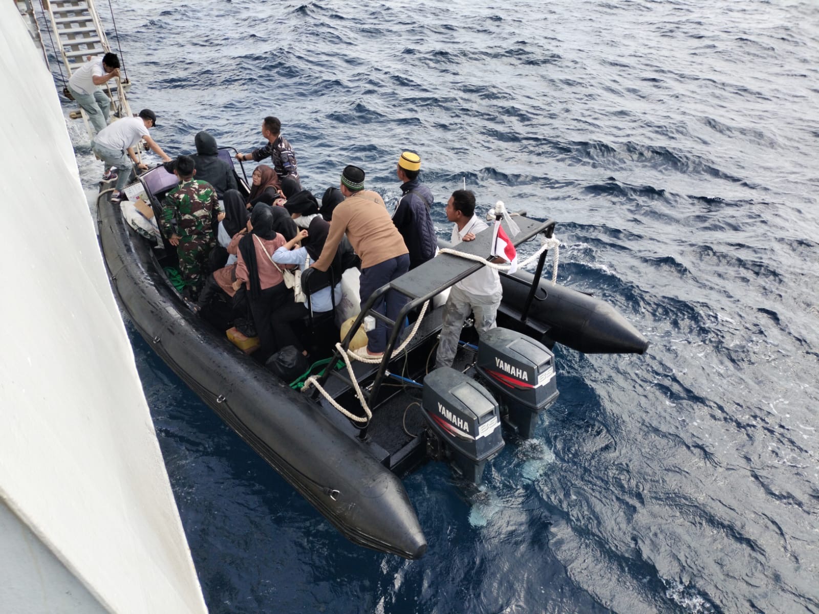 Ada pun pengangkutan warga sejumlah 114 orang di evakuasi dari darat menuju kapal Bakamla RI, yang terdiri dari 52 orang warga Enggano dan 60 orang Mahasiswa Universitas Islam Negeri Fatmawati Sukarno ( UINFAS) kota Bengkulu yang selesai melaksanakan KKM serta 2 orang pasien dengan kebutuhan medis darurat.