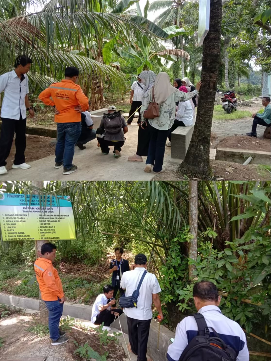 Setelah melakukan pengarahan singkat di kantor desa, rombongan langsung meninjau beberapa lokasi pembangunan. Titik pertama yang dipantau adalah proyek pembangunan drainase di Dusun 3 dengan panjang mencapai 75 meter. Infrastruktur ini merupakan kebutuhan mendesak bagi warga dalam mengatasi genangan air serta memperlancar sistem pembuangan ketika curah hujan meningkat. Tim monitoring memeriksa kualitas material, ketebalan cor, hingga kelurusan konstruksi. Hasilnya, pembangunan dinilai sesuai rencana dan menunjukkan progres yang sangat baik.