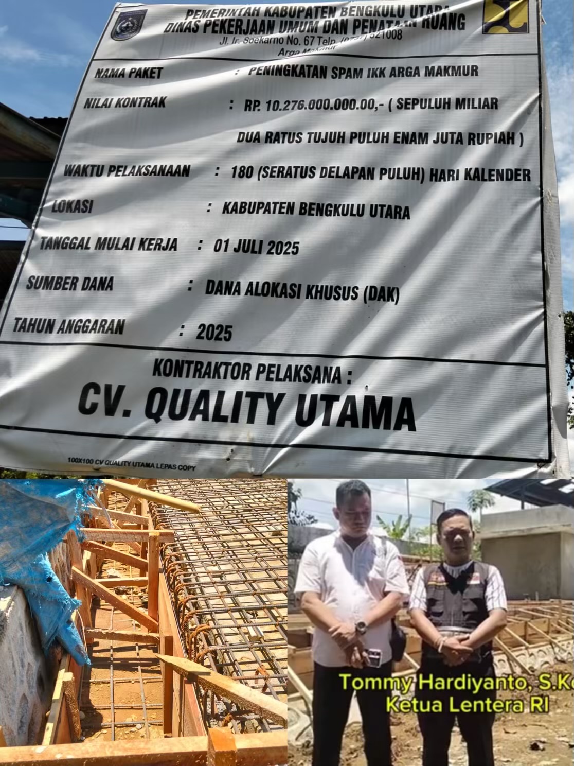 Ketua Lentera, Tomy Hardianto, S.Kom, ikut angkat bicara mengenai kondisi tersebut. Ia menegaskan bahwa pengawasan harus dilakukan secara ketat agar pelaksanaan berjalan transparan. “Kami mendukung penuh pembangunan SPAM IKK Arga Makmur ini, namun perlu diingat bahwa proyek sebesar Rp10 miliar harus benar-benar dikerjakan dengan baik. Jangan sampai ada indikasi pemborosan anggaran atau kualitas pekerjaan yang rendah. Apalagi sempat berhenti dua minggu, ini jelas harus menjadi perhatian serius,” tegas Tomy.