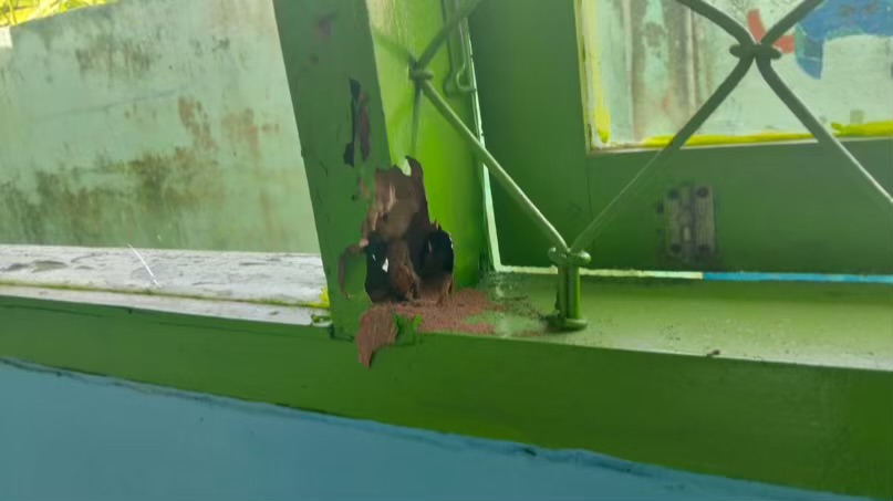 Disisi lain ketua pelaksana kegiatan mengatakan kalau kusen yang keropos sudah diajukan untuk di ganti,karna waktu pengecatan baru kelihatan ternyata dalamnya sudah keropos semua.sedangkan untuk pengecoran bangunan baru memang tidak menggunakan alat bantu mesin molen karena sudah sesuai standar.”ujarnya”