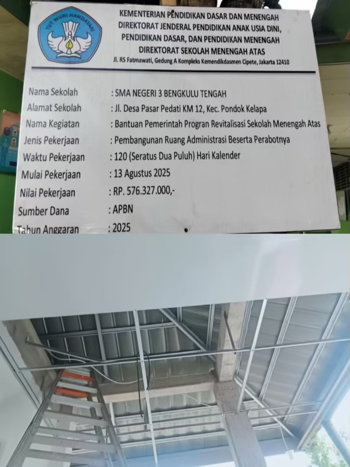 Adapun Bantuan proyek pembangunan revitalisasi di SMAN 3 Bengkulu Tengah yang dikelola secara swakelola meliputi pembangunan gedung baru,rehabilitasi 2 ruangan kelas, rehabilitasi ruangan ibadah dan pembangunan toilet/WC dengan anggaran mencapai kurang lebih 1 Miliar Rupiah yang terindikasi duga’an pekerjaan tersebut dikerjakan tidak sesuai spesifikasi RAB,dikerjakan asal jadi tanpa menggunakan alat penunjang seperti mesin molen untuk pengecoran dan lalainya pengawasan.